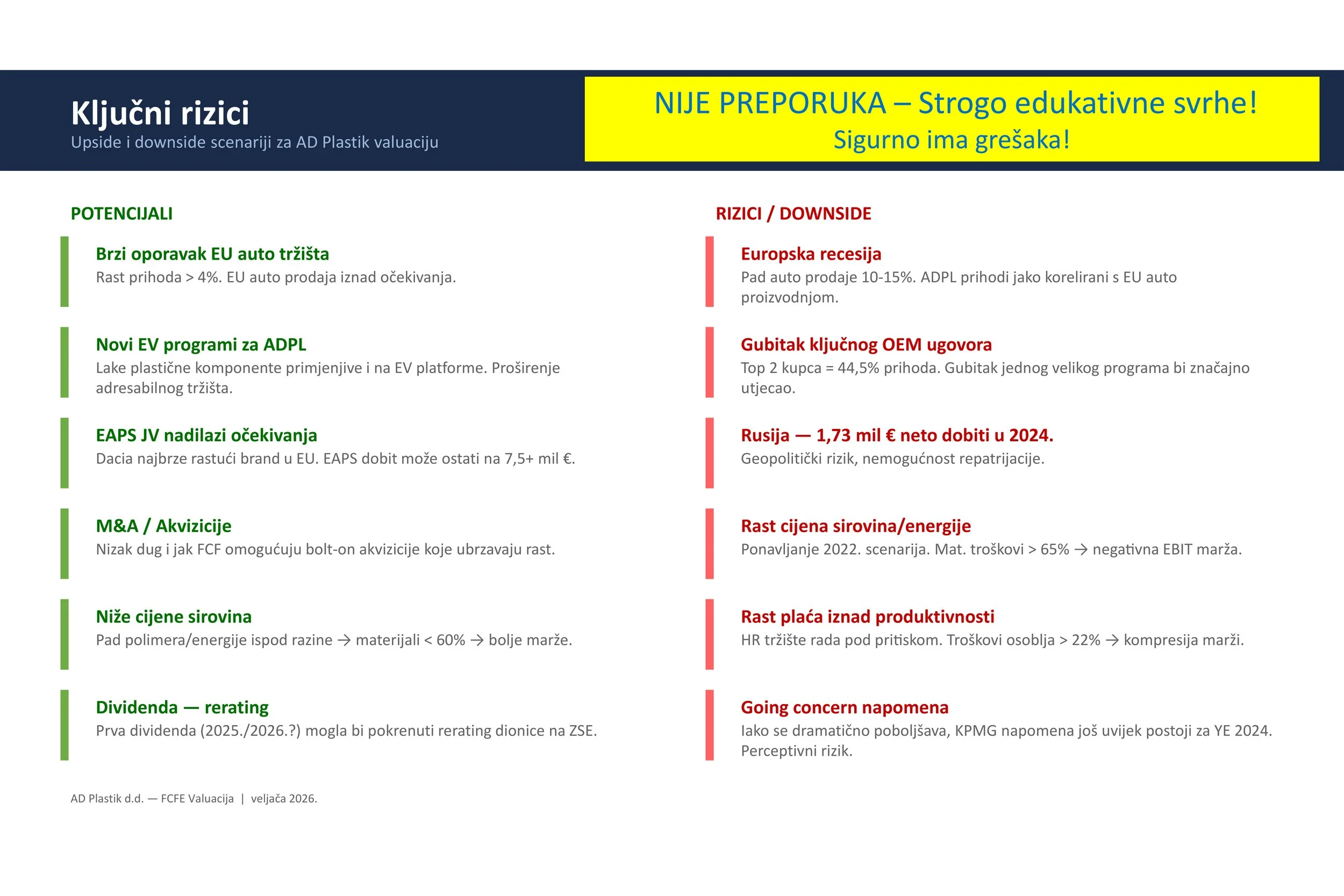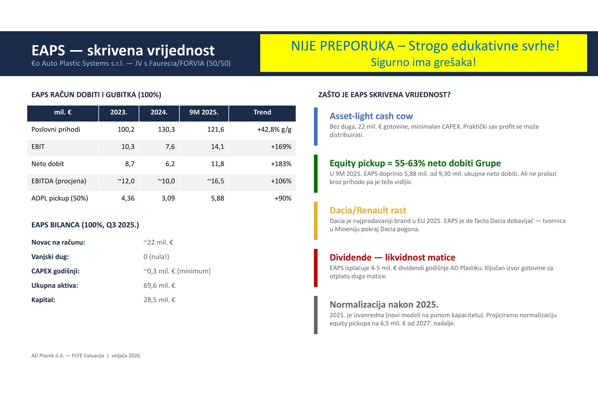 Napravio sam i primjer valuacije za ADPL kako biste bolji mogli razumjeti mehanizme procjene cijene kao ulagačke discipline. Objavljena je na Facebooku 8.2. pri cijeni od 22,70 eura.