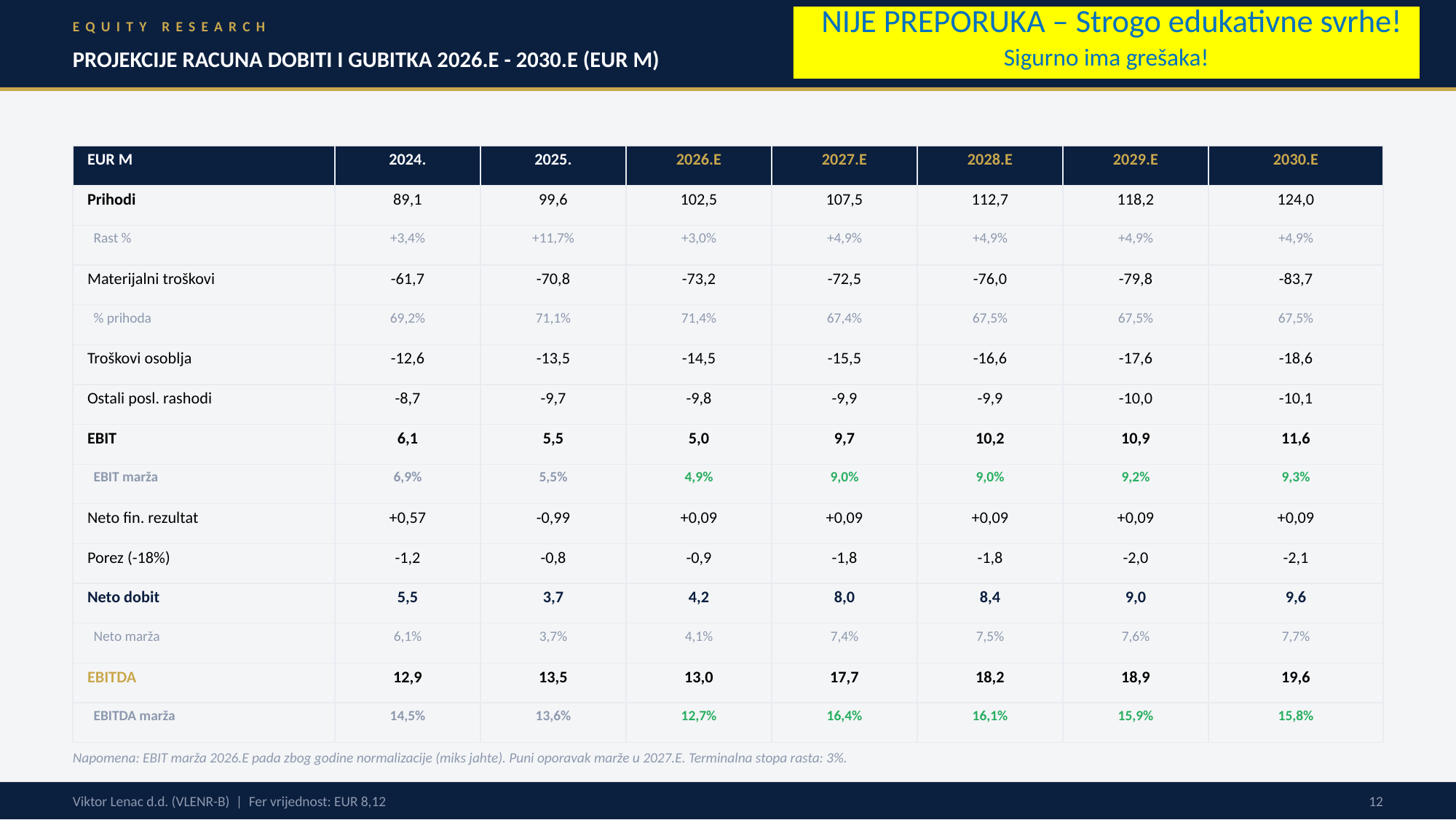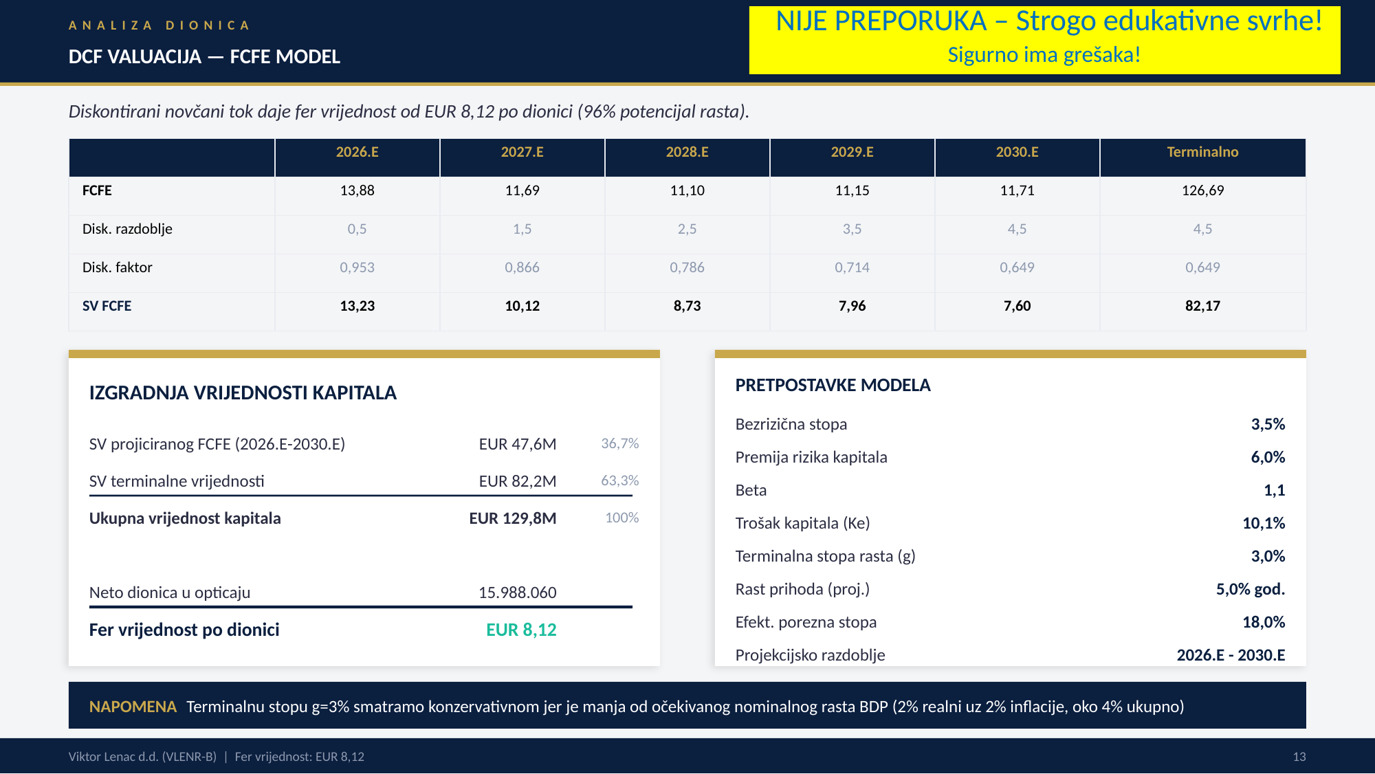 Osnove ulaganja: primjer valuacije: VLEN